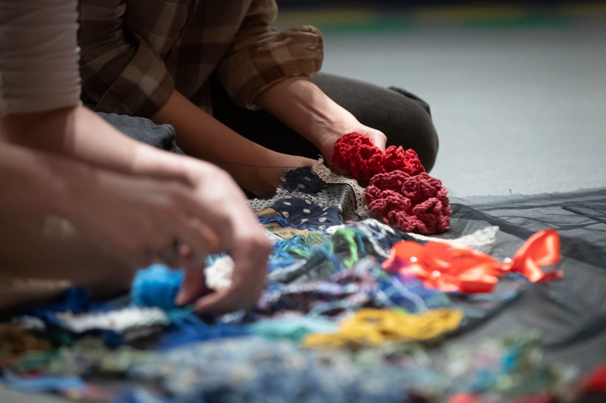 We wspólnym procesie twórczym wykorzystamy różnorodne materiały włókiennicze i pasmanteryjne, takie jak: tkaniny, dzianiny, nici, włóczki, sznurki, tasiemki, koronki i wiele innych. Ich przetwarzanie będzie polegać na szyciu, dzierganiu, szydełkowaniu, haftowaniu, wyszywaniu, tkaniu, zaplataniu, a nawet malowaniu. W ten sposób – poprzez dotyk, swobodne tworzenie i wzajemne wsparcie – poznamy różne tekstylia i tkaniny oraz podstawowe techniki ich użycia jako materii sztuki. Poeksperymentujemy też z zastosowaniem innych materiałów, na przykład papieru, części roślin czy drobnych przedmiotów.