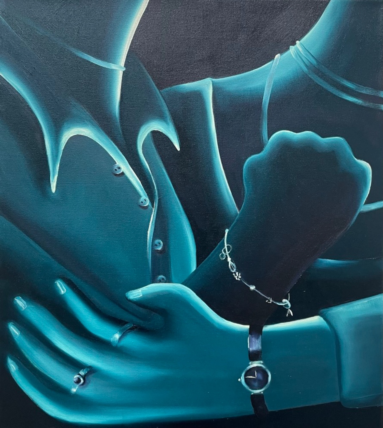 Karolina Jabłońska, „Bijące się dziewczyny”, 2019-22, olej na płótnie, 45×40 cm