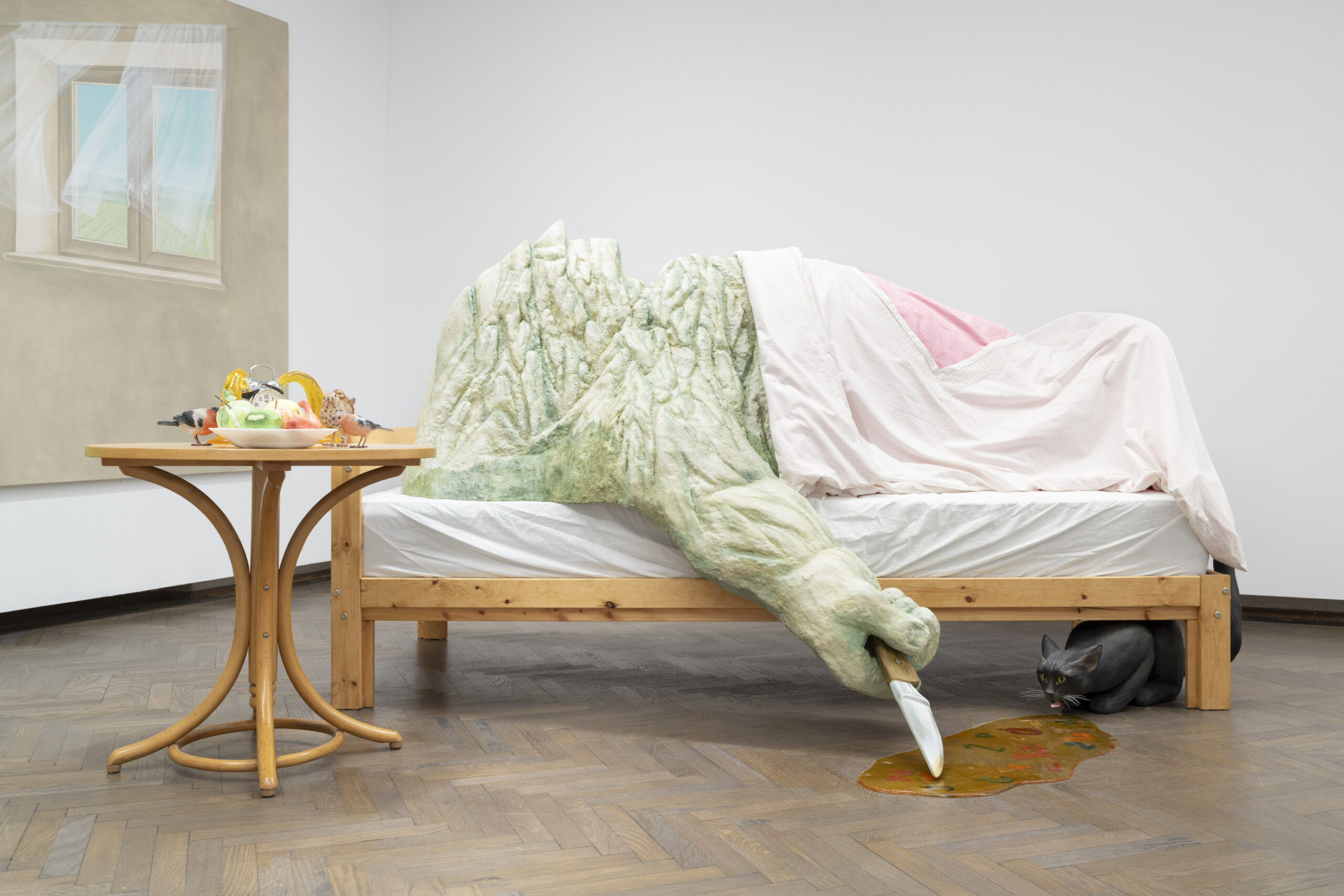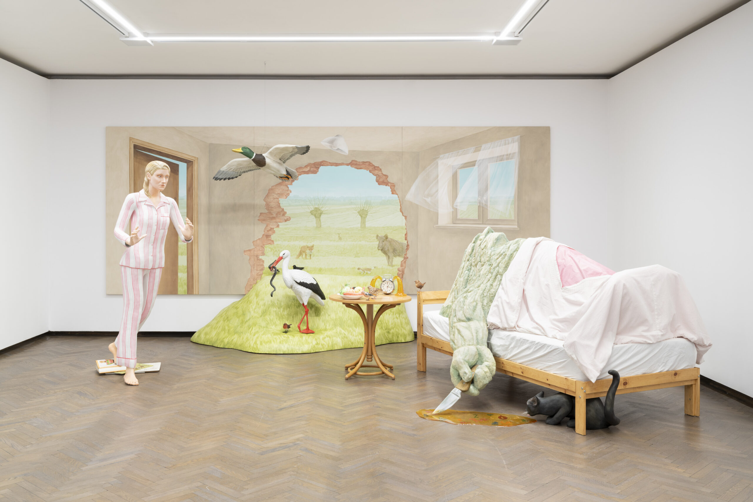 Giewont budzi się ze snu, ptaki mówią po polsku, a wierzby krzyczą z przerażenia. Alicja Pakosz reinterpretuje motywy znane z polskich legend, dziewiętnastowiecznego malarstwa i kultury popularnej. Interesuje ją banalny nacjonalizm, czyli niedostrzegane, znormalizowane w życiu codziennym symbole narodowe. Na wystawie w Galerii Arsenał w Białymstoku szuka ich w utrwalonych w kulturze sposobach przedstawiania pejzażu. Nowe prace malarskie i wielkoformatowa diorama w charakterystyczny dla artystki sposób łączą absurdalny humor z niepokojącym napięciem. Pochodząca ze Śląska malarka bada za ich pomocą własną relację ze swoją polską tożsamością – w cieniu toczącej się w sąsiednim kraju wojny i narastających narracji narodowościowych.